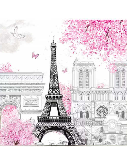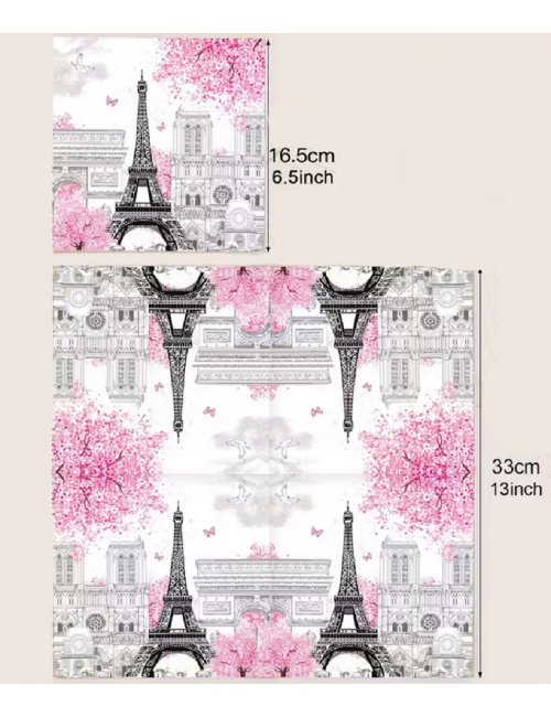 Set 10 servetele Paris Turn Eiffel, dimensiuni 33 x 33 cm (extins), din 2 straturi de hartie, culori pastelate.