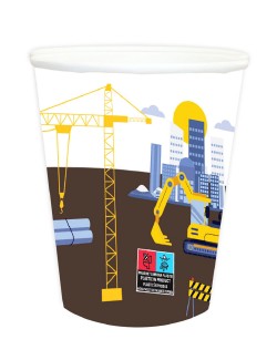 Set 6 pahare Santier Constructii, capacitate 250 ml, inaltime 9 cm, de unica folosinta, din carton, imprimeu multicolor.