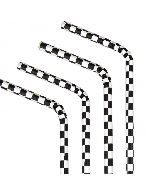 Set 10 paie cu spirale alb-negre, din hartie, lungime 19,5 cm, potrivite pentru bauturi reci.