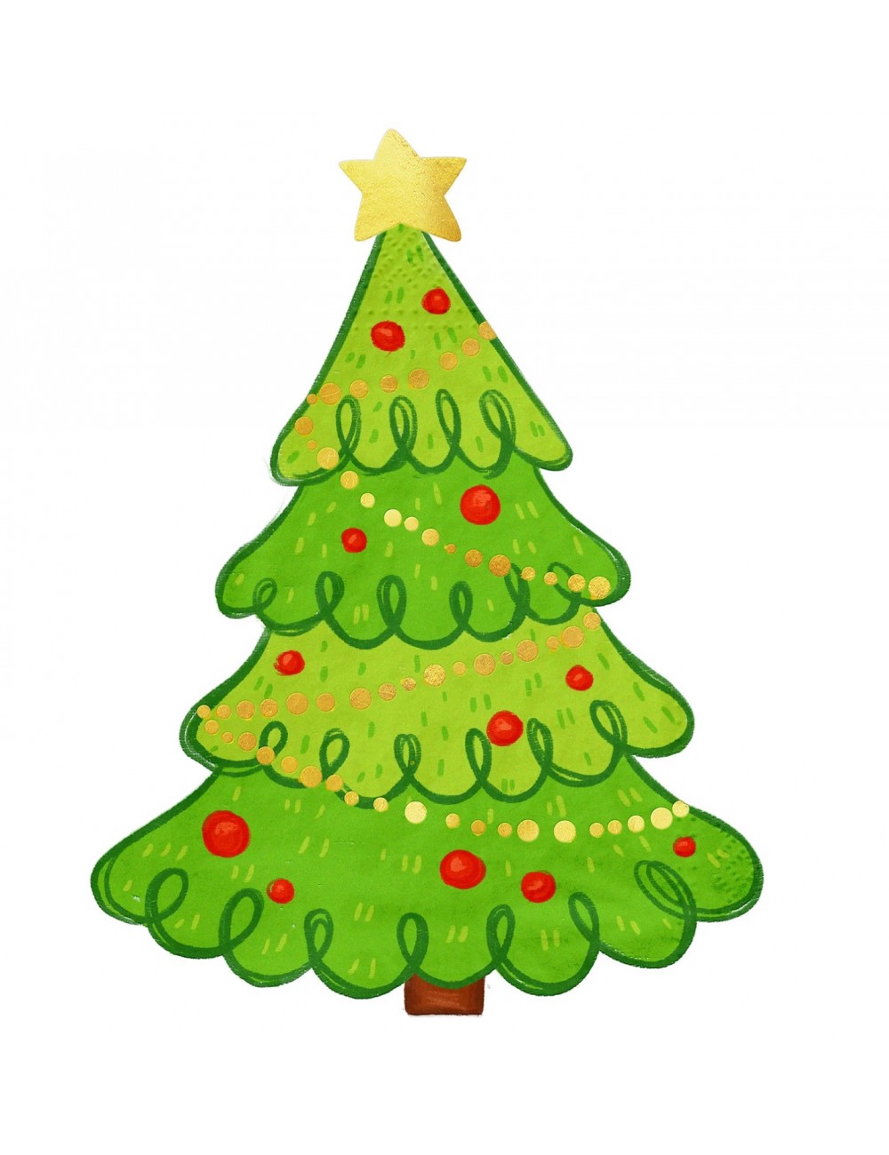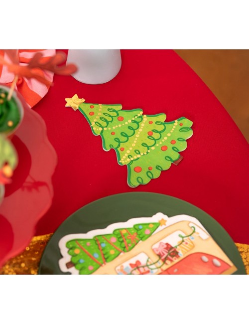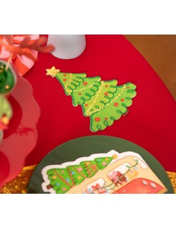 Set 10 servetele cu forma de Brad de Craciun, dimensiuni 31 x 23 cm (extins), adica 15,5 x 11,5 cm (pliat), din 2 straturi de hartie.