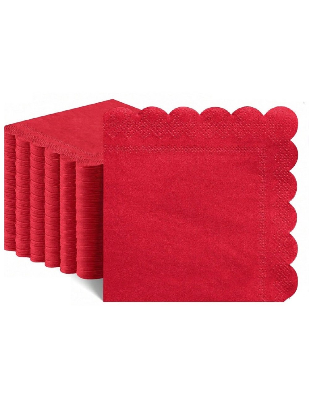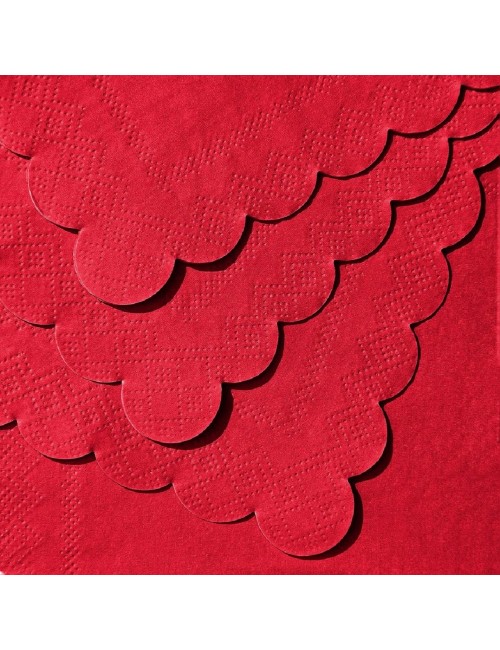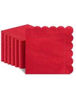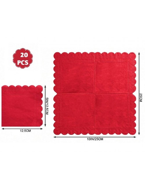 Set 20 servetele Servetele Rosii cu margine ondulata, din 2 straturi de hartie, dimensiuni 25 x 25 cm (extins), pentru cocktail si alte ocazii.