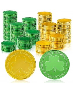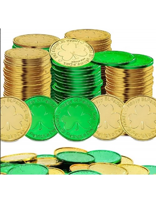 Set 20 Monede cu trifoi, din Comoara Spiridusilor, fabricate din plastic, diametru 3,5 cm, culori verde si auriu, perfecte pentru St.Patrick's day.