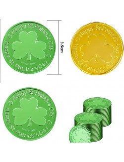 Set 20 Monede cu trifoi din Comoara Spiridusilor, fabricate din plastic, diametru 3,5 cm, culori verde si auriu, perfecte pentru St.Patrick's day.
