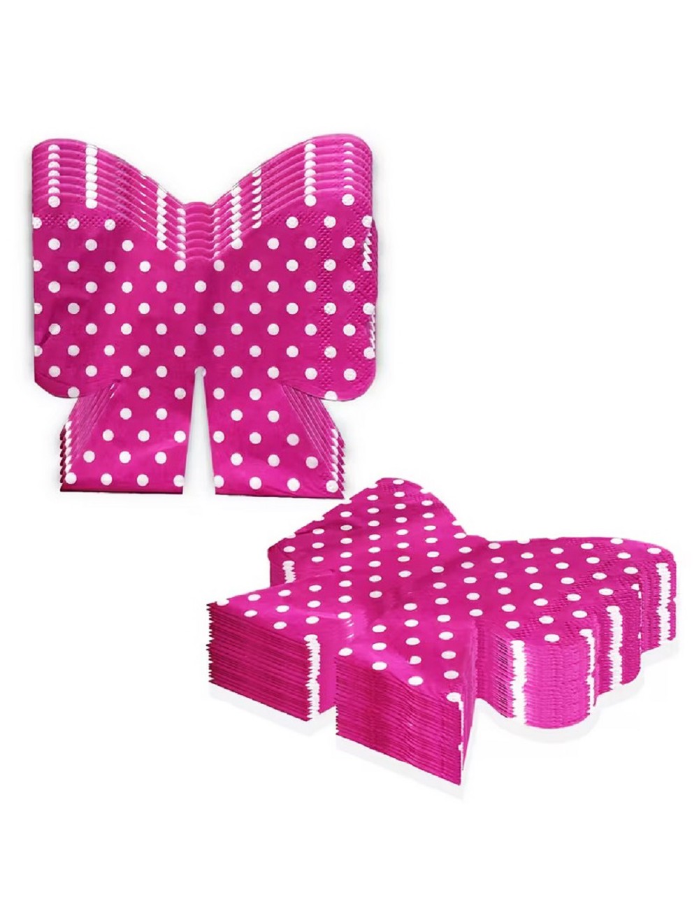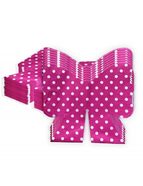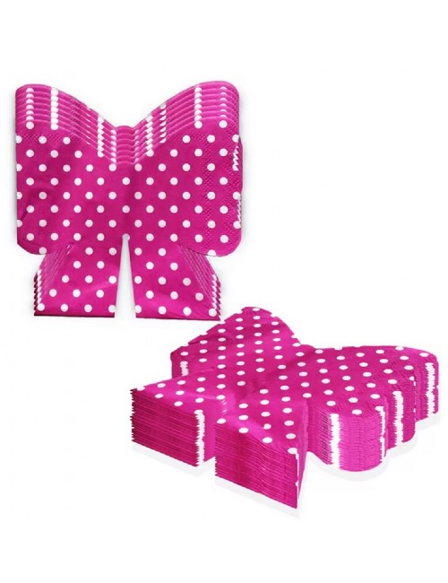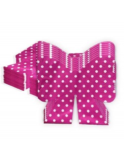 Set 20 servetele Fundite roz, dimensiuni 24 x 22 cm (extins), adica 12 x 11 cm pliat, din 2 straturi de hartie fucsia cu buline albe.