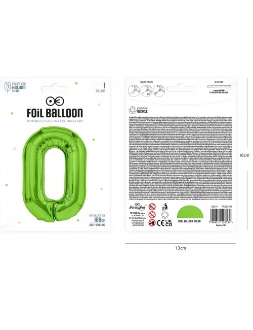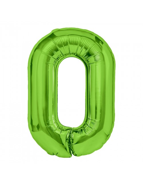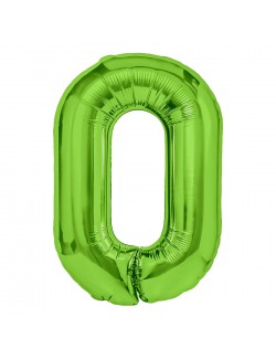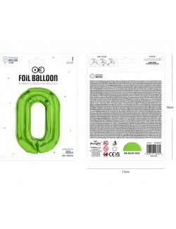 Balon folie Cifra 0, culoare verde deschis, inaltime aprox 100 cm (dezumflat), este potrivit pentru umplerea cu aer (nu pluteste) sau cu heliu (pluteste).