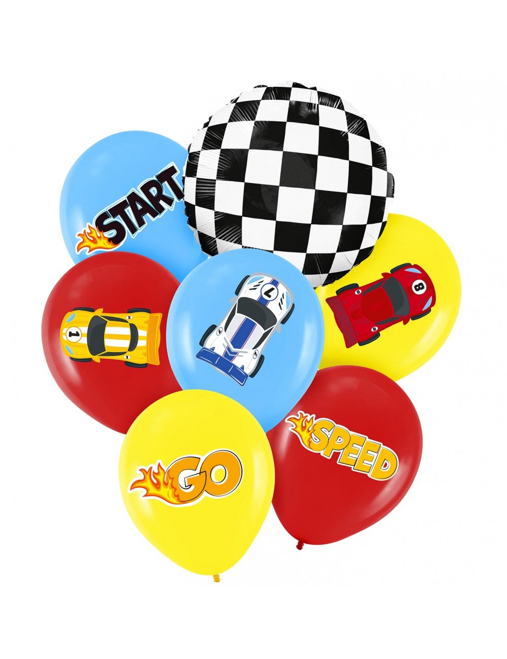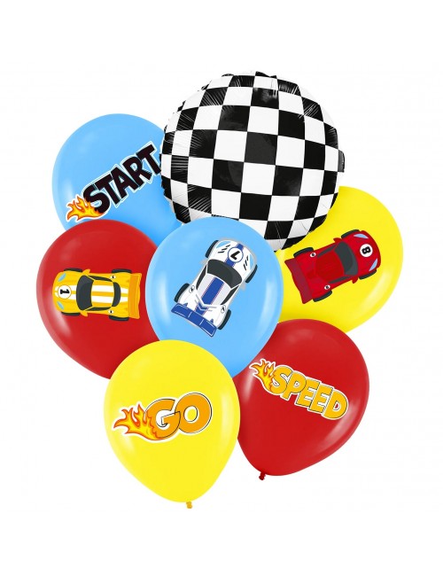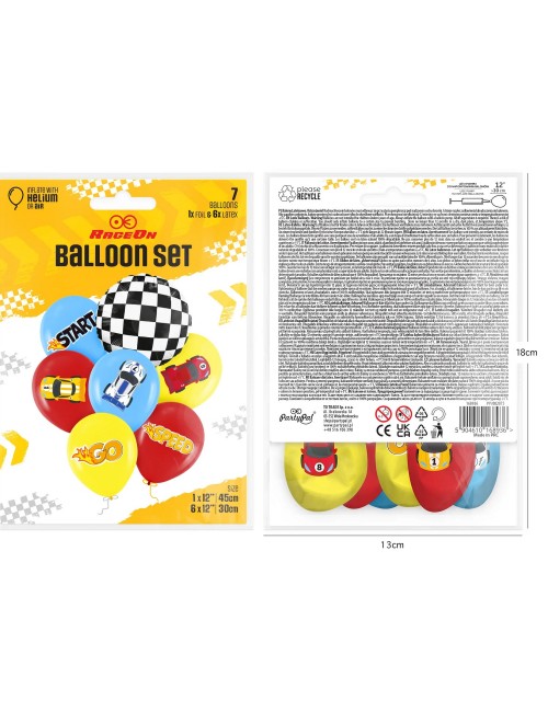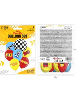 Set 7 baloane Curse Formula 1, contine 6 baloane din latex si 1 balon din folie de aluminiu, dimensiuni: baloane din latex - aprox 30 cm; balon din folie aprox. 45 cm (dezumflat).
