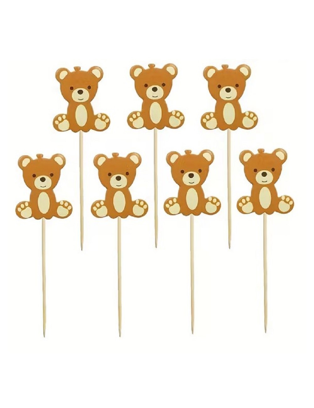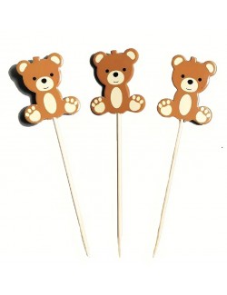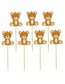 Set 10 scobitori lungi Ursulet brun, lungime aprox.13 cm, din lemn si decoratiuni din carton imprimat (pe o singura parte).