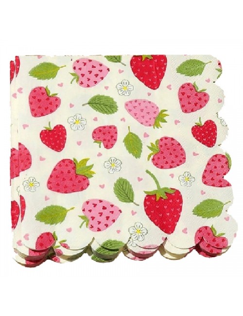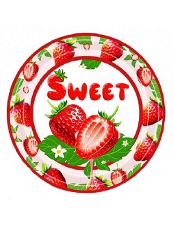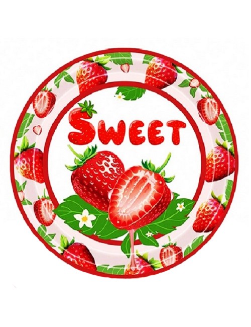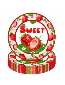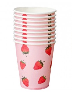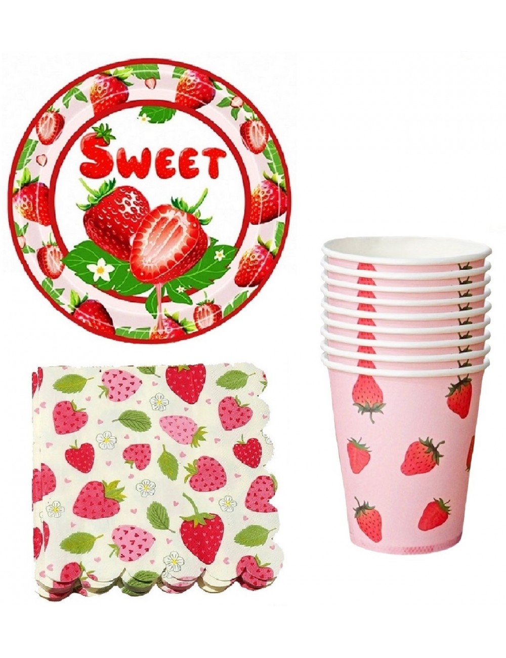 Set Farfurii, servetele si pahare cu Capsune, pentru 8 persoane, contine produse de unica folosinta, din carton/ hartie:
