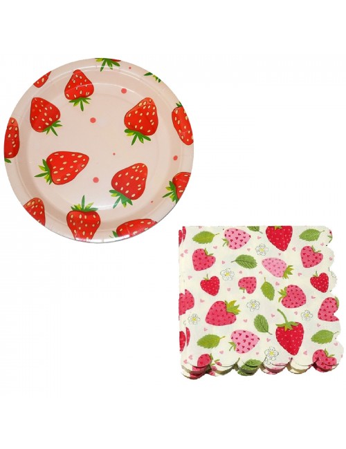 Set 6 farfurii si 10 servetele Capsune, de unica folosinta, din carton/ hartie: