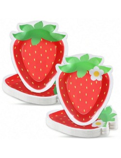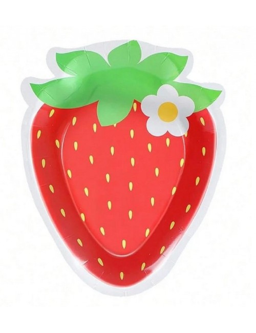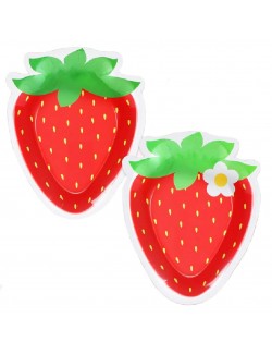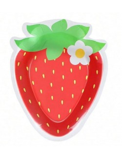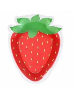 Set 8 farfurii forma Capsune, de unica folosinta, dimensiuni 23 x 19 cm, din carton, 2 modele combinate.