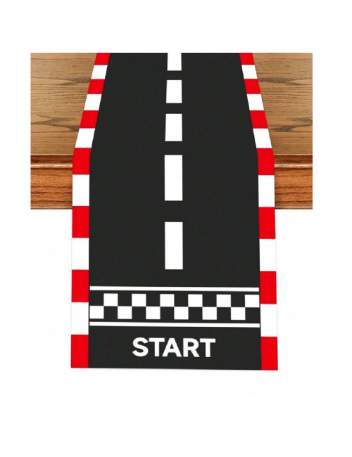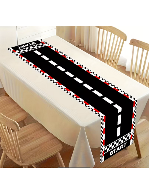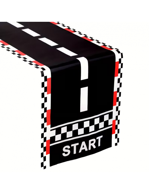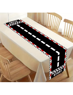 Decoratiune masa Curse Masini - Start, lungime 180 cm, latime 35 cm, material textil, 100% poliester, pentru petreceri tematice.