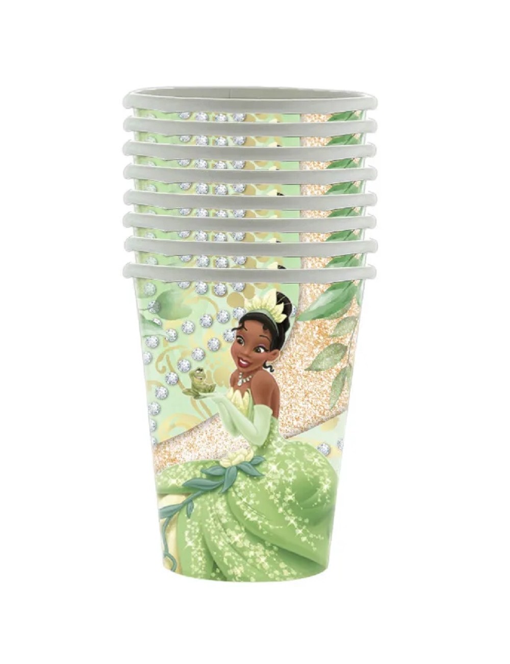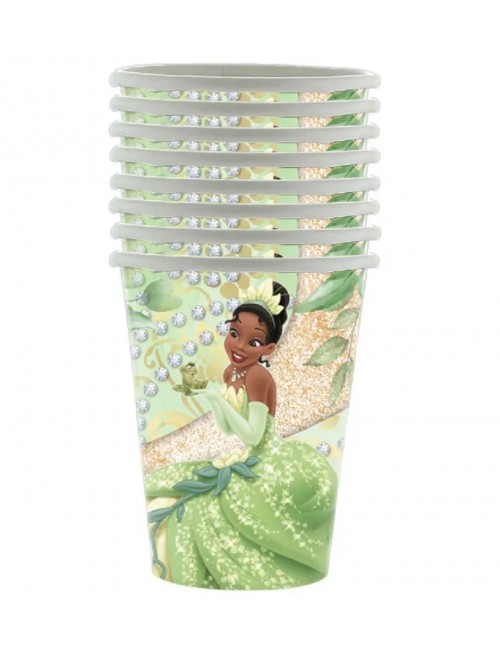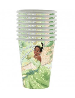 Set 8 pahare Printesa Tiana, de unica folosinta, din carton, capacitate 250 ml, perfecte pentru o petrecere tematica: