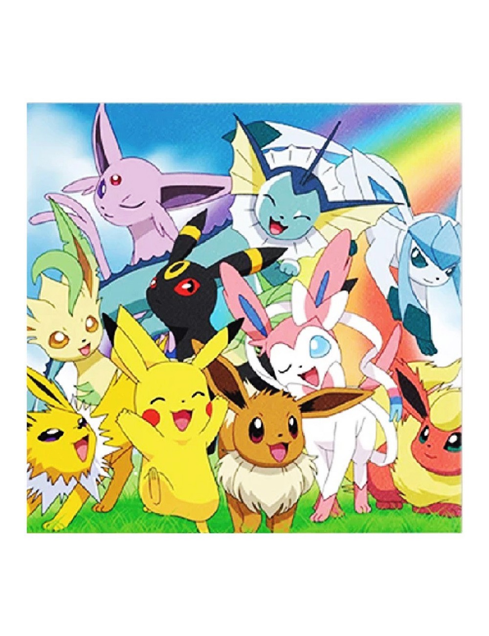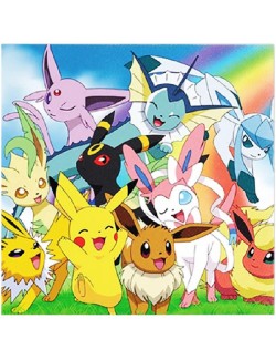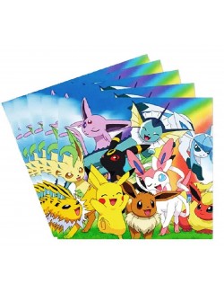 Set 10 servetele Pokemon Go, dimensiuni 33 x 33 cm (extins), din 2 straturi de hartie, imprimeu multicolor, pentru petreceri tematice.