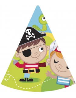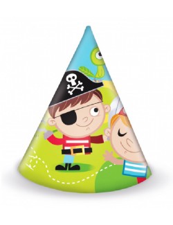 Set 6 coifuri party, Pirati - Treasure Hunt, din carton, prindere cu elastic sub barbie, imprimeu in multicolor.