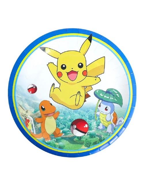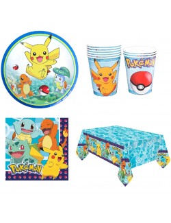 Set petrecere Pokemon, pentru 10 persoane, contine produse de unica folosinta, din carton/ hartie, perfecte pentru o petrecere tematica: