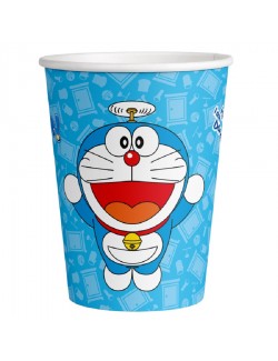 Set 8 pahare Doraemon, simpatica pisica-robot, capacitate 250 ml, de unica folosinta, din carton, perfecte pentru petreceri ale fanilor manga.