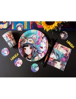 Set 10 farfurii Party Manga & Anime, diametru 23 cm, de unica folosinta, din carton, nu contin plastic, imprimeu multicolor.