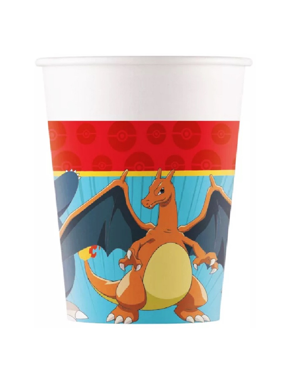 Set 8 Coifuri petrecere Pokemon, din carton, prindere cu elastic, contine cate 2 coifuri pentru fiecare personaj: Pikachu, Bulbasaur, Squirtle si Charmander.