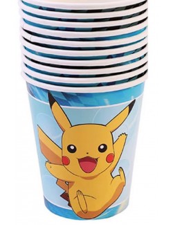 Set 8 pahare party Pokemon, Pikachu & Pokeball, din carton, capacitate 200 ml, de unica folosinta, multicolore.