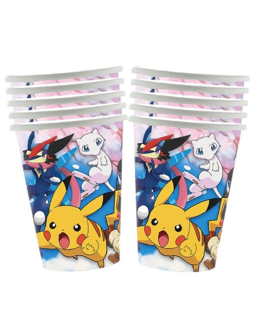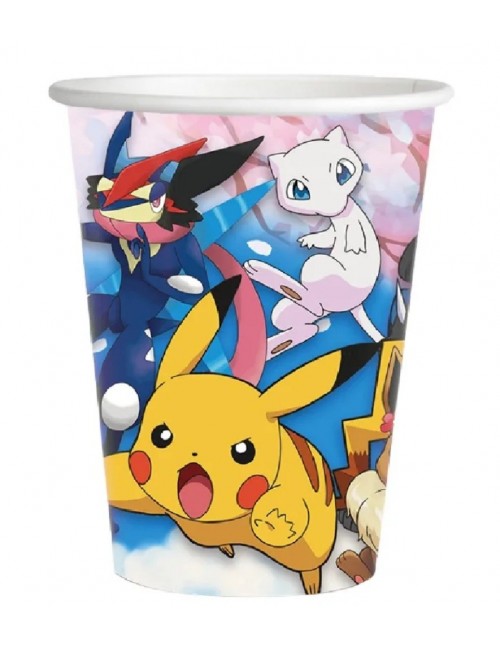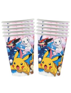 Set 6 pahare Pokemon Team, din carton, capacitate 200 ml, de unica folosinta, multicolore, pentru petrecerei tematice.