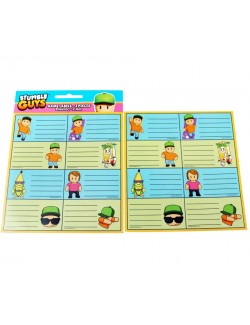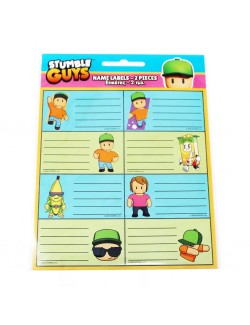Set 16 Etichete scolare Stumble guys, din hartie, imprimeuri si culori diferite cu personaje si alte elemente specifice indragitului joc multiplayer.