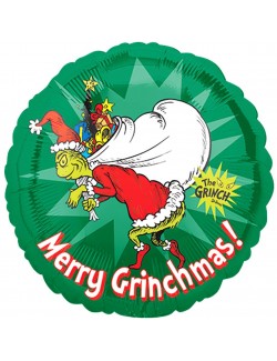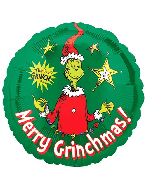 -2 baloane rotunde Grinch Merry Grinchmas!, diametru aprox. 43 cm (dezumflat), imprimeu diferit fata-verso,