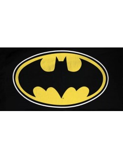 Prosop plaja logo Batman, dimensiuni 140 x 70 cm, 100% bumbac, culori negru-galben, materiale nontoxice, certificate Oeko-Tex.