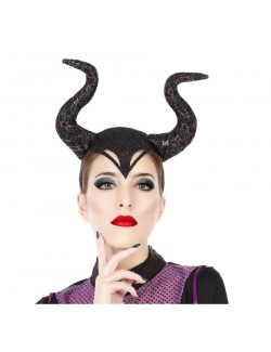 Bentita Coarne Maleficent, din catifea n eagra, cu fir auriu si umplutura din vatelina, 100% poliester, avand ca suporto o bentita din plastic.