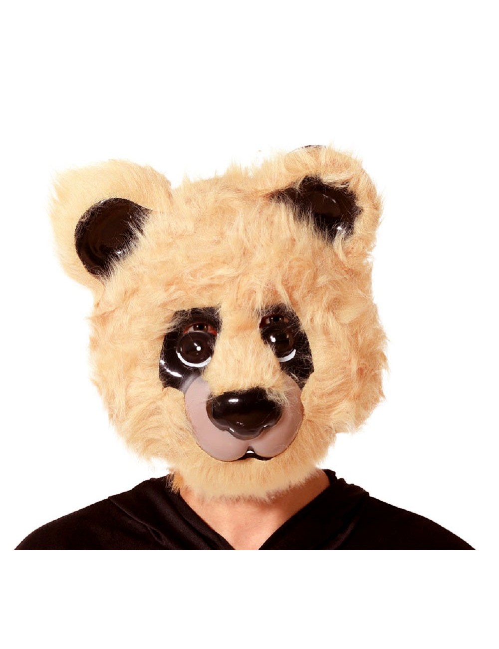 Masca Urs pentru adulti, pe suport din plastic rezistent acoperit cu blanita sintetica maro deschis (100% poliester).