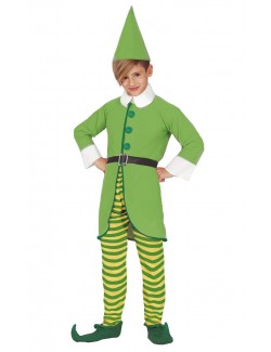 Costum Elf, pentru baieti de 5-11 ani, contine: Bluza verde cu centura atasata, caciulita si pantaloni lungi cu dungi verde-galben, bluza este prevazuta cu elastic in talie.