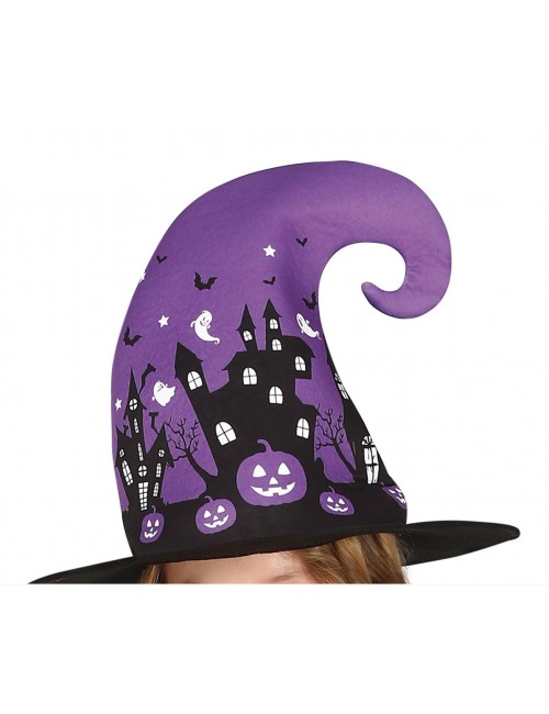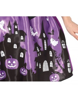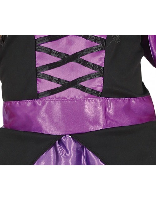 Costum Vrajitoare, Purple Witch, pentru fete, contine: Rochie si palarie, din satin mov si din lycra neagra, material: 100% poliester.