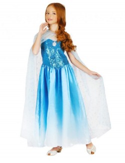 Costum Printesa / Craiasa zapezii, fete 110-140 cm, bleu, pentru fete cu inaltimea 110/120 cm, 120/130 si 130/140 cm, contine rochie lunga si mantie.