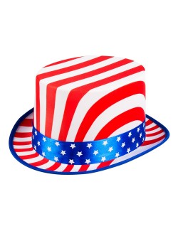 Palarie Joben Steag American deluxe, pentru adulti, cu banda din satin albastru cu stelute albe, acoperita cu material textil imprimat cu steagul SUA, 100% poliester.