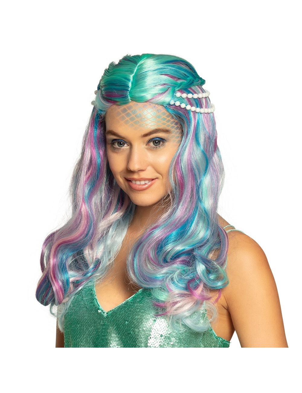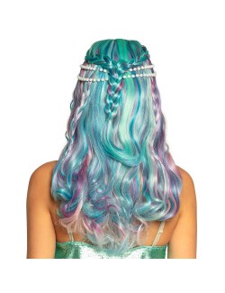 Peruca Sirena cu perle, multicolora, pentru adulti, fire sintetice de foarte buna calitate, 100% poliester.