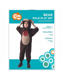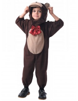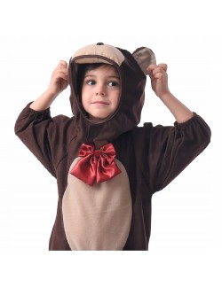 Costum Urs Brun pentru copii, contine: salopeta din plus subtire si gluga detasabila cu forma unui cap de ursulet, elastic la mansete si glezne, 100% poliester.