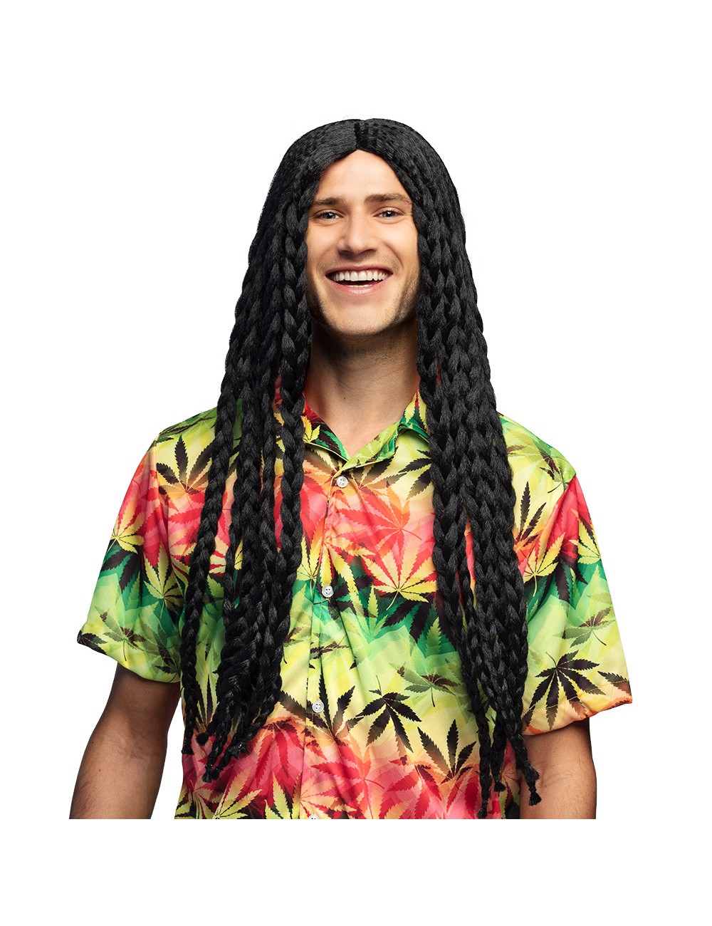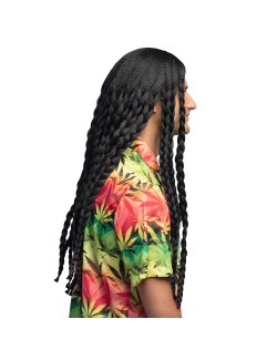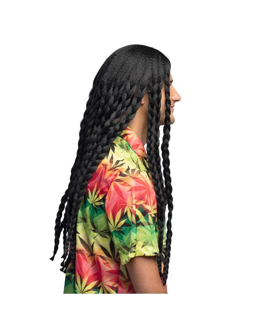Peruca rasta Soul Rebel, pentru adulti (femei si barbati), codite impletite lungi, culoare neagra, fabricata din fire sintetice, poliester 100%.