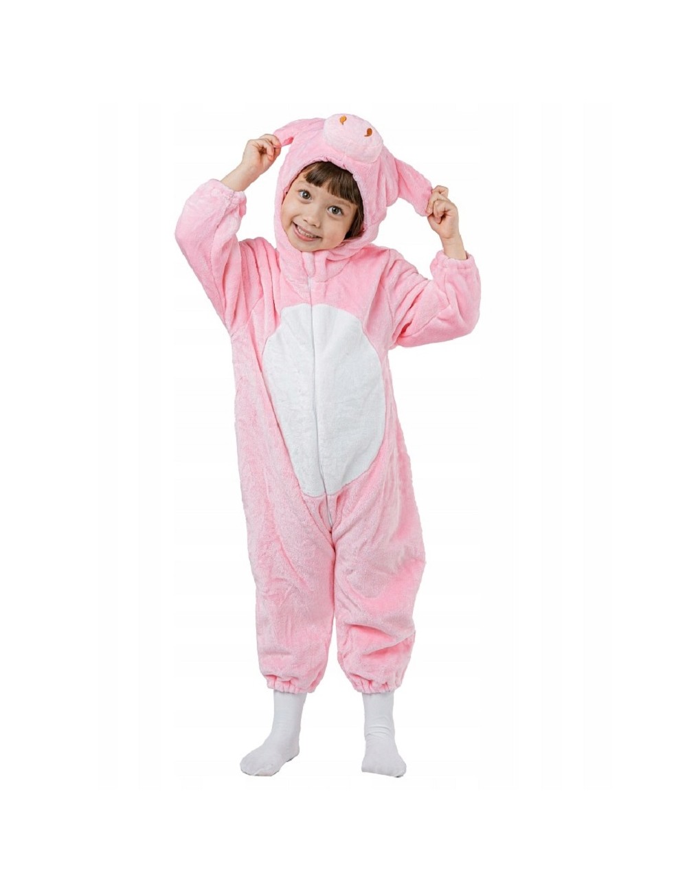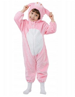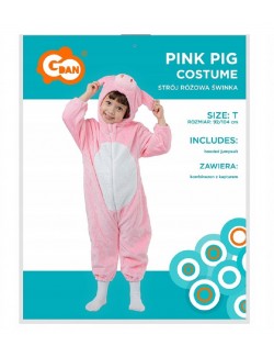 Costum Purcelus roz, pentru copii de 92-104 cm, contine: Salopeta cu gluga, din lycra (100% poliester), inchidere cu fermoar.