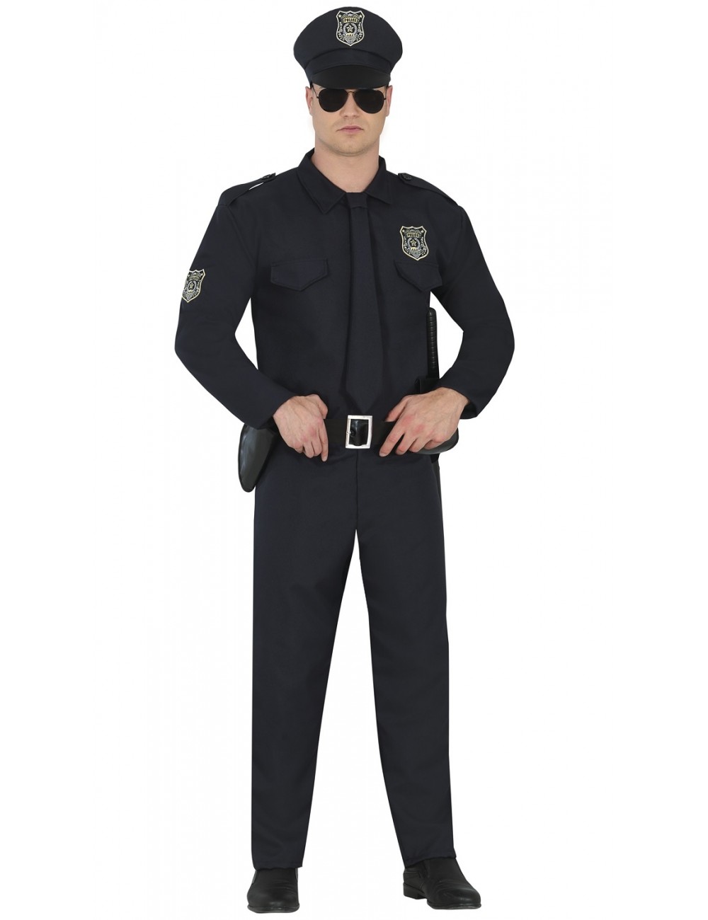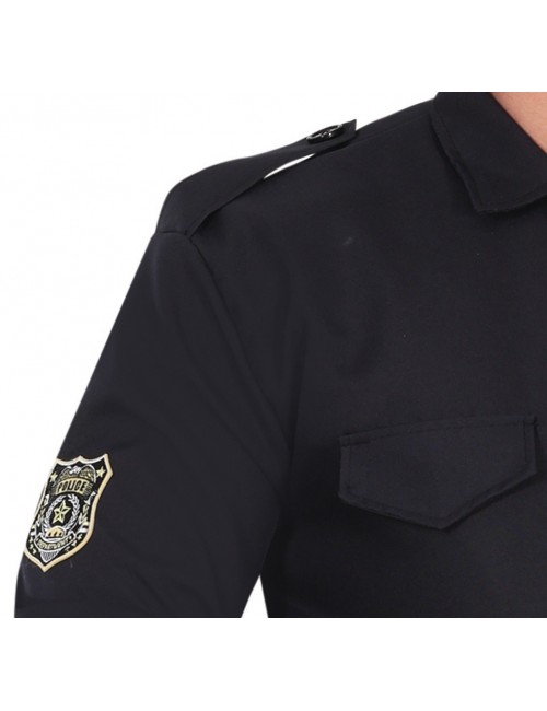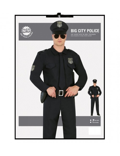 Costum Politist, Big City Police, pentru barbati, contine camasa cu cravata atasata, pantaloni, centura si sapca, material 100% poliester.