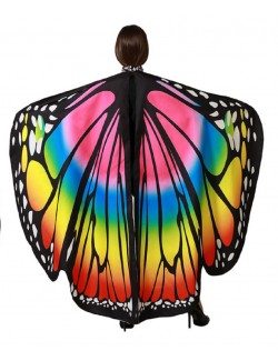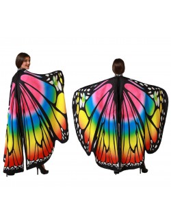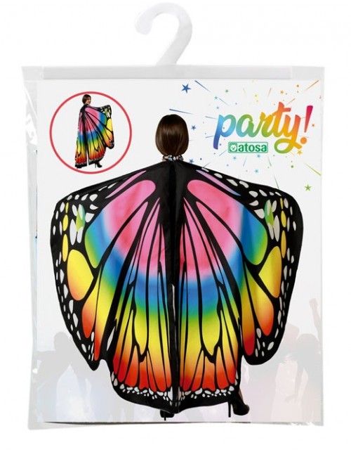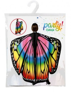 Aripi fluture multicolore, din satin, inaltime 140 cm, latime totala 160 cm, prindere cu elastic la gat si degete, 100% poliester.