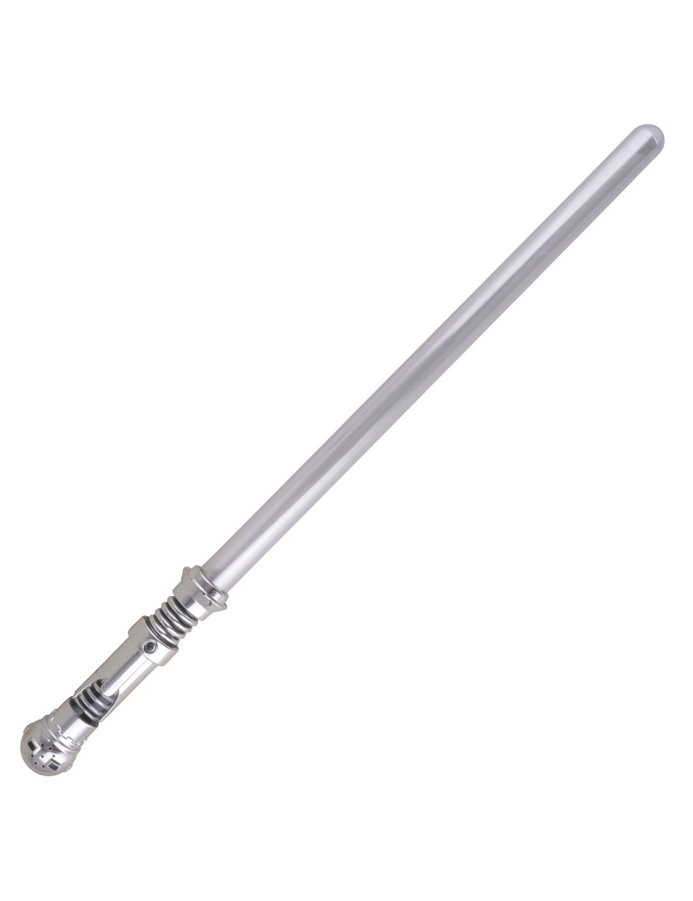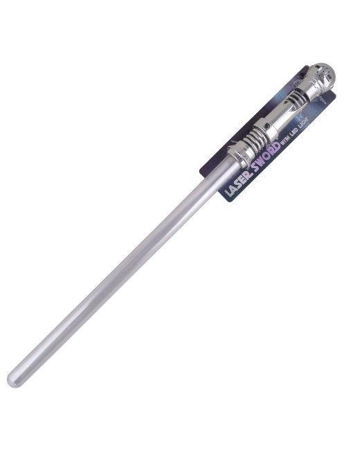 Sabie argintie cu efecte luminoase,din plastic, lungime 65 cm, accesoriu care poate completa costumatia de carnaval sau Halloween.