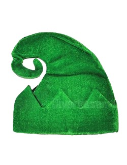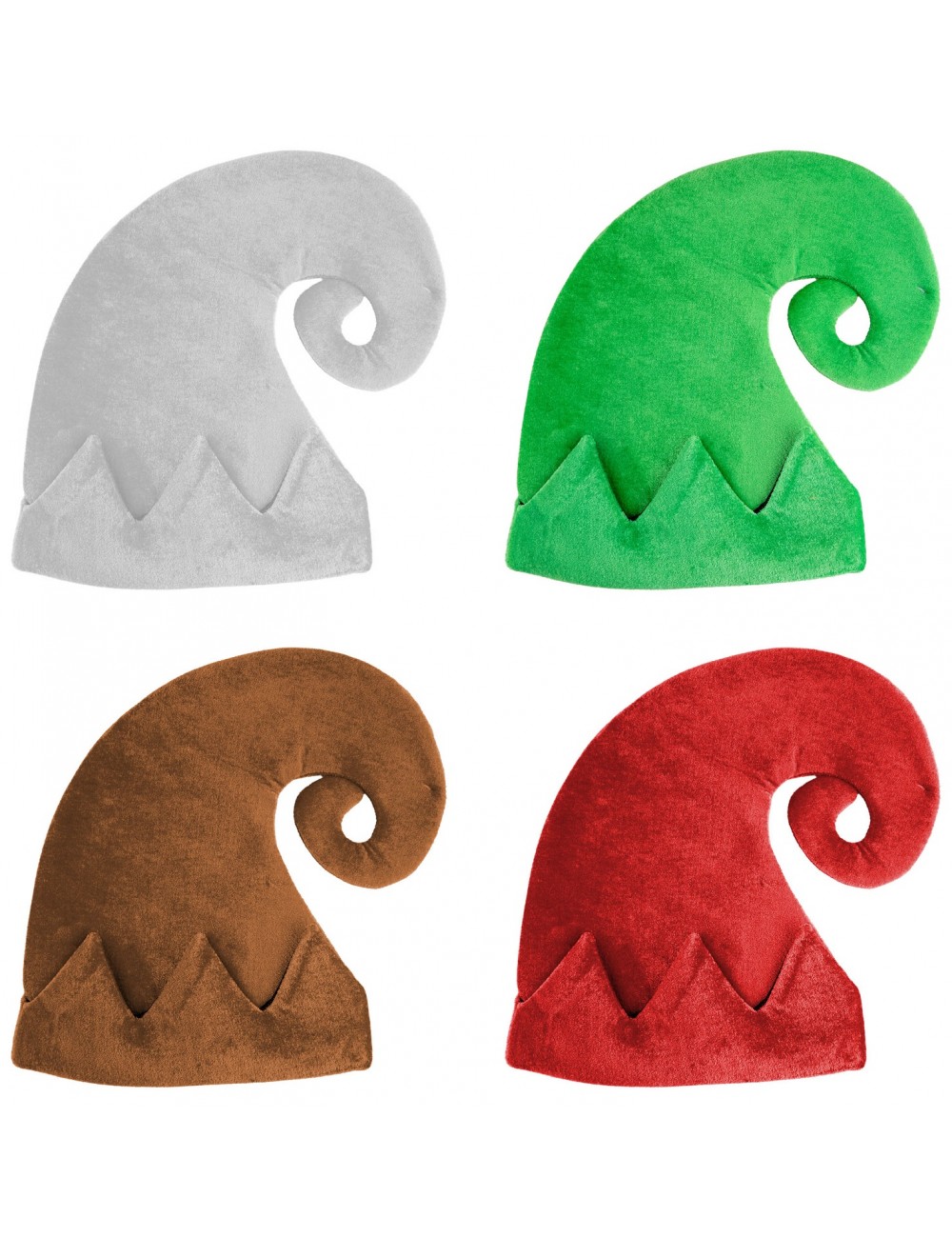Caciula Pitic / Elf pentru adulti, 4 culori, din plus gros, culori alb, maro, verde si rosu, 100% poliester, circumferinta aprox 56-58 cm, inaltime 33 cm.