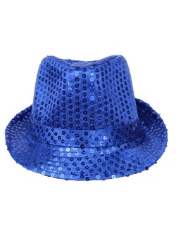 Palarie albastra cu paiete - articol de petrecere, marime 58, model Borsalino. Material: 100% poliester.