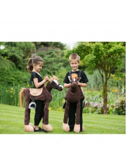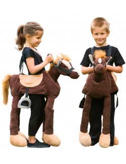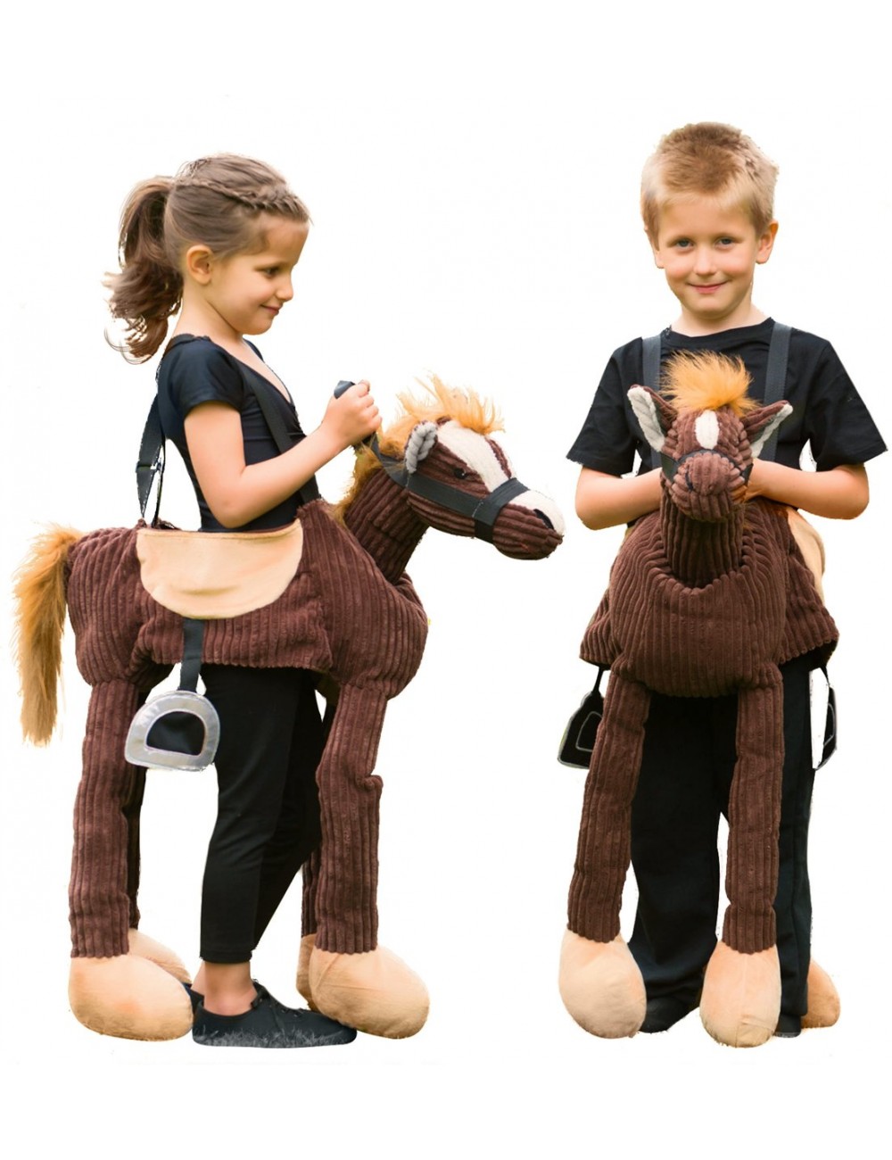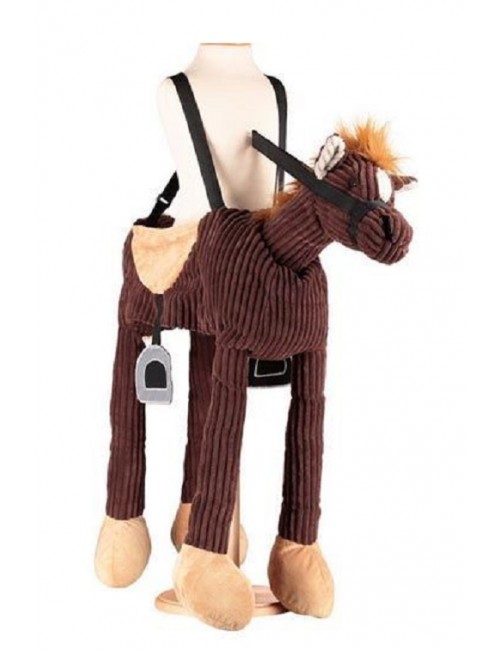 Costum unisex, Ponei, marime unica, pentru copii 3-8 ani (98-128 cm), confectionat din plus cu garnitura de blanita sintetica, poliester 100%, culoare maro. este prevazut cu bretele reglabile.