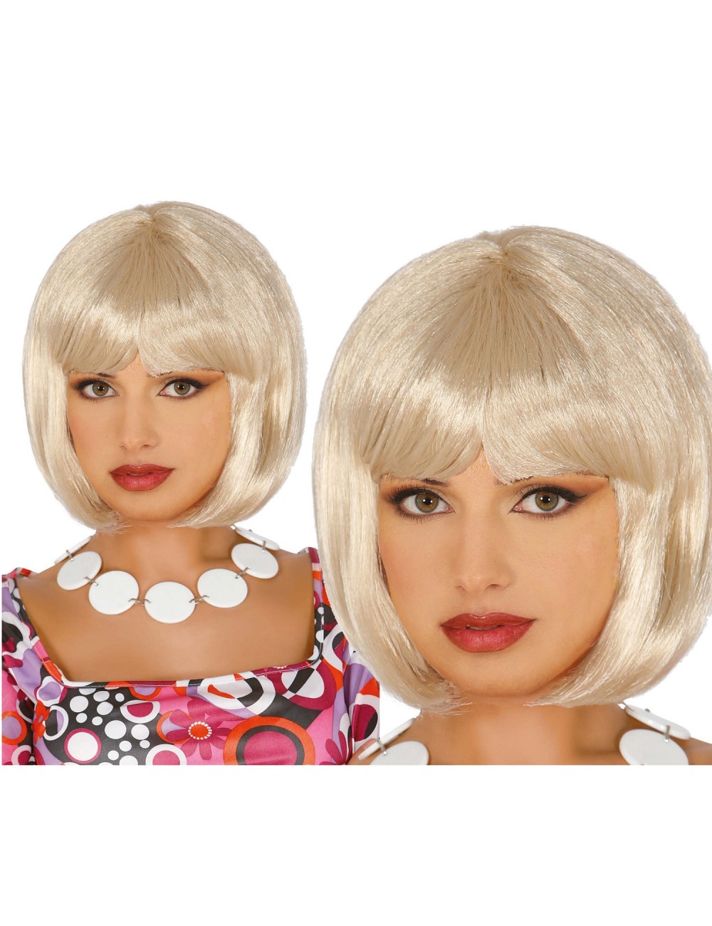 Peruca blonda, par scurt cu breton, din fire sintetice de buna calitate, ambalata intr-o cutie speciala