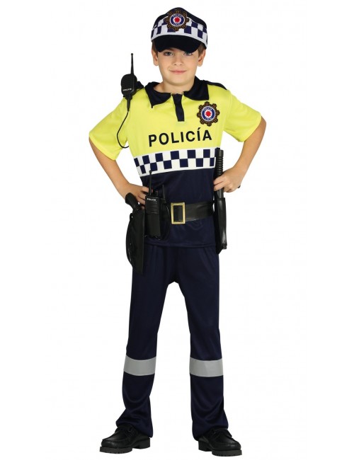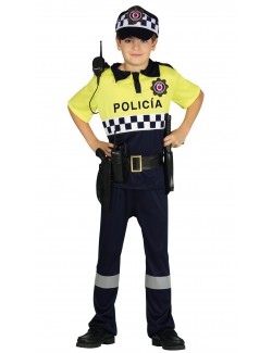 Costum Politist pentru copii, contine bluza cu maneca scurta, pantaloni lungi, centura si sapca, material 100% poliester.