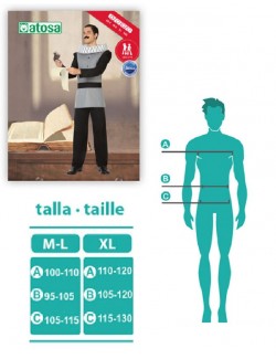 Costum de epoca, Scriitor Cervantes, pentru barbati, contine: jacheta cu maneca lunga, guler rotund si pantaloni, material lycra, 100% poliester.