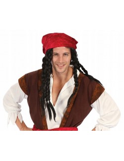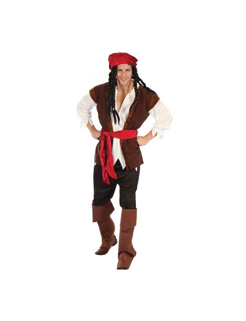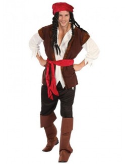 Costum Pirat pentru barbati, contine Camasa cu Vesta, Pantaloni, Acoperitoare incaltaminte, Bandana si Centura, material 100% poliester.