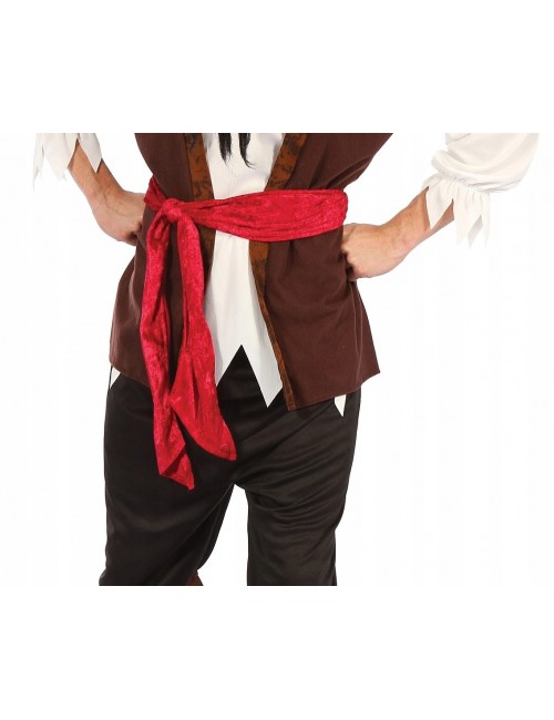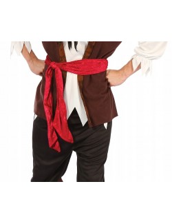 Costum Pirat pentru barbati, contine Camasa cu Vesta, Pantaloni, acoperitoare incaltaminte, Bandana si Centura, material 100% poliester.