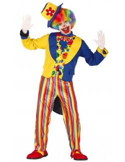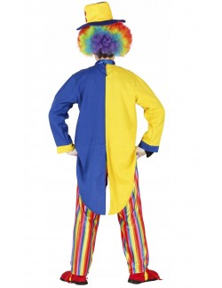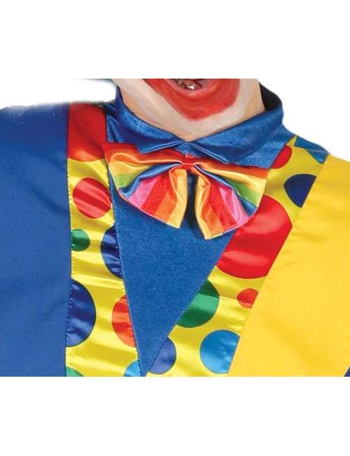 Costum Clown adulti, marimi M (48-50) si L (52-54), include jacheta cu papion atasat, pantaloni din satin si palarie, material 100% poliester.