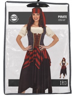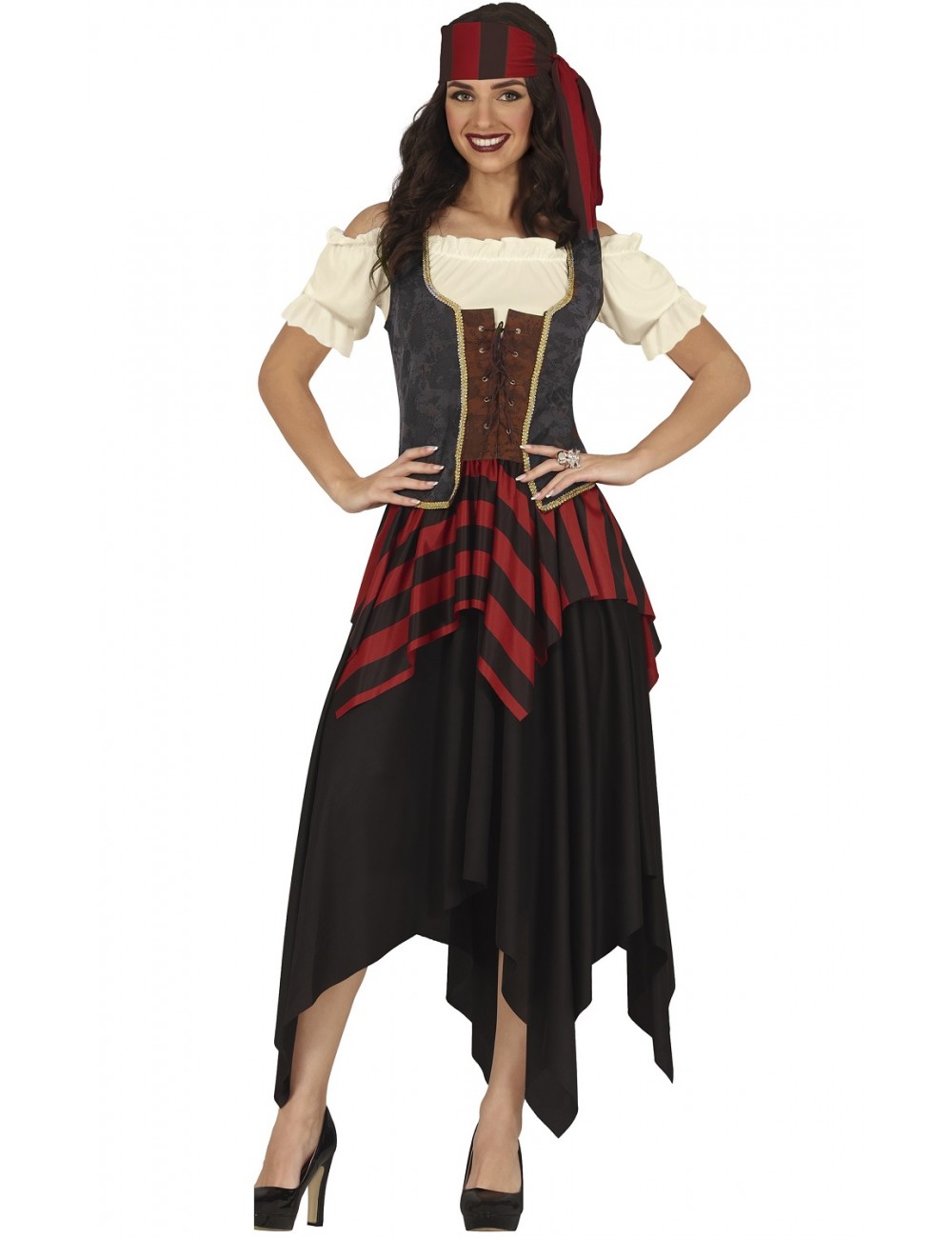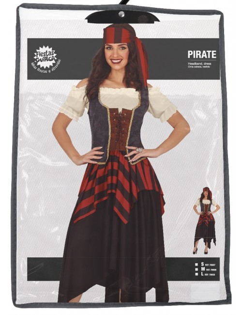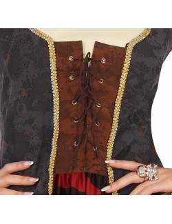 Costum femei, Pirat Caraibe, marime S (36/38), contine: Rochie din lycra, asimetrica si vesta-corset maro, 100% poliester.